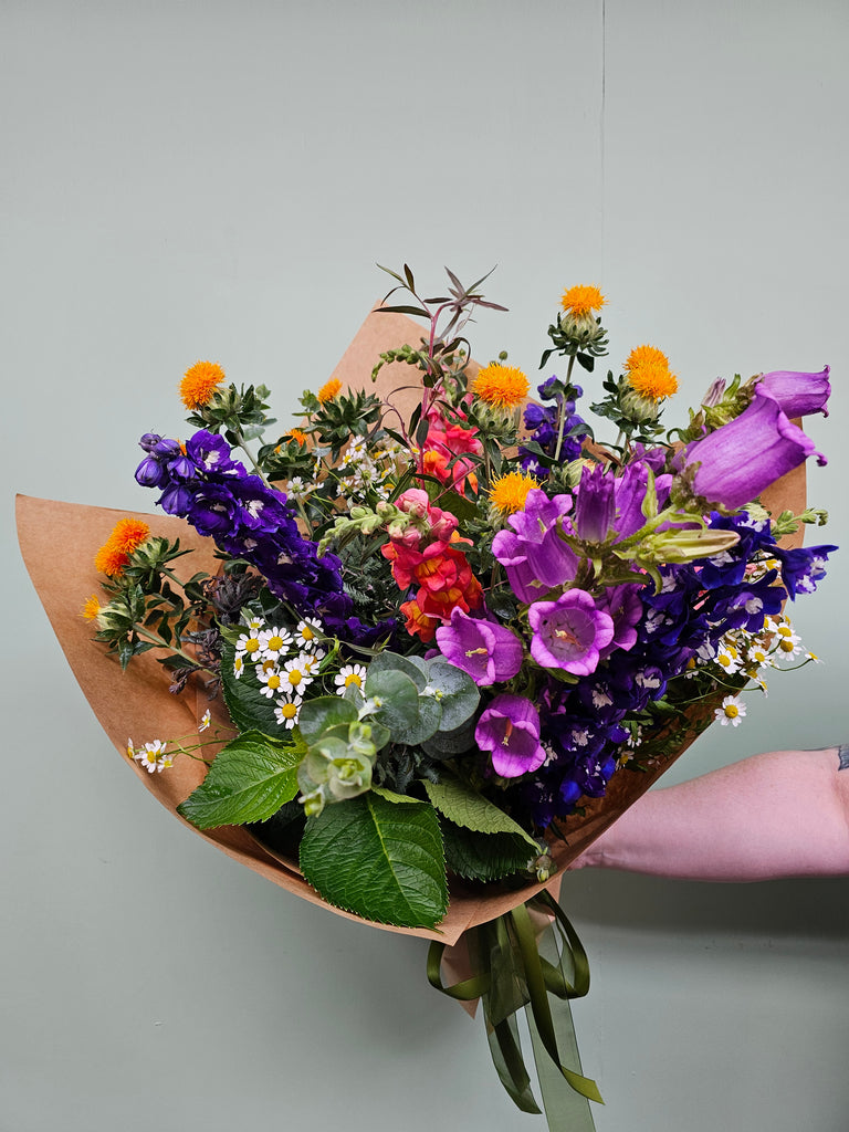 Loose, lovely, and a little bit wild – this bunch is full of seasonal blooms with a free-spirited feel. Designed to look like they’ve just been gathered from a ramble through the countryside, it’s all about natural textures, mixed colours, and untamed charm.