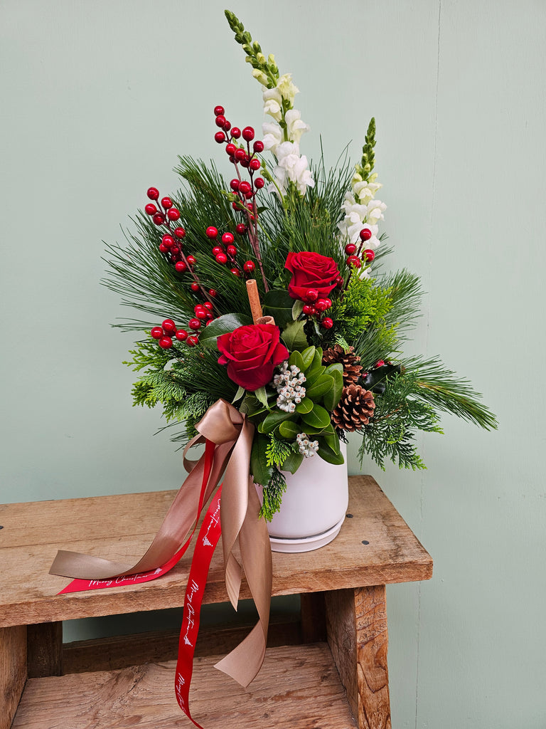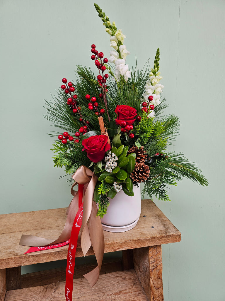 For those wanting to spread cheer and add a touch of Christmas magic, let us work our magic! We’ll create a lush, festive arrangement using our favourite fresh Christmas blooms of the day, layered with fragrant greenery and finished with high-quality faux berries for a long-lasting pop of colour.